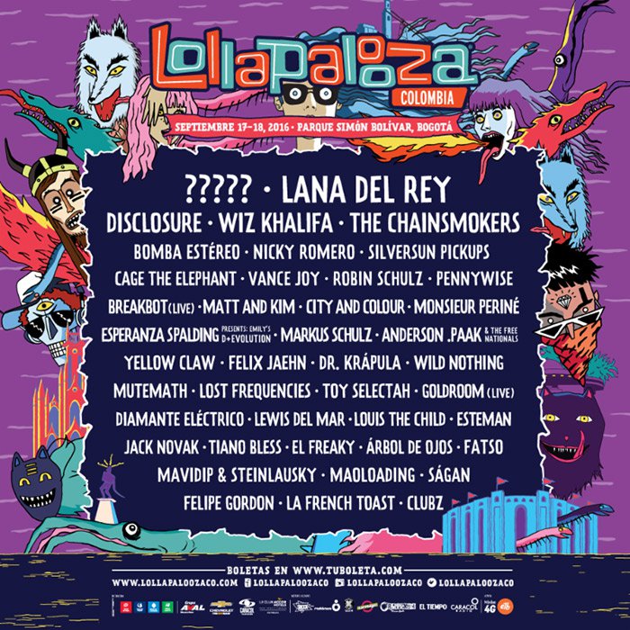 Um cartaz da próxima edição Lollapalooza Colômbia trazia a lista do line up com as atrações. Porém, cinco interrogações compunham o head line ao lado de Lana Del Rey. Essa interrogações seria Rihanna, que estava negociando sua apresentação no evento. De acordo com as informações, ela cancelou o show por não chegarem a um acordo sobre o valor do cachê.